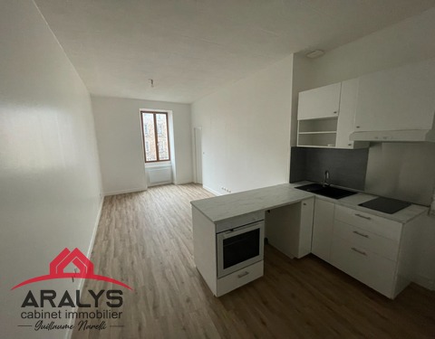 DISPONIBLE DE SUITE Appartement de type 2 de 41.9 m² situé au 1er étage d'un petit immeuble au cœur du centre ville de Cours comprenant : -une cuisine aménagée et équipée ouverte sur pièce de vie, -une chambre lumineuse, -une salle d'eau avec WC. Chauffage individuel électrique. Les ++ : - cuisine équipée avec plaque hotte et four - rénové récemment - commerces à proximité Loyer : 230 € + 20 € de provisions pour charges DPE...