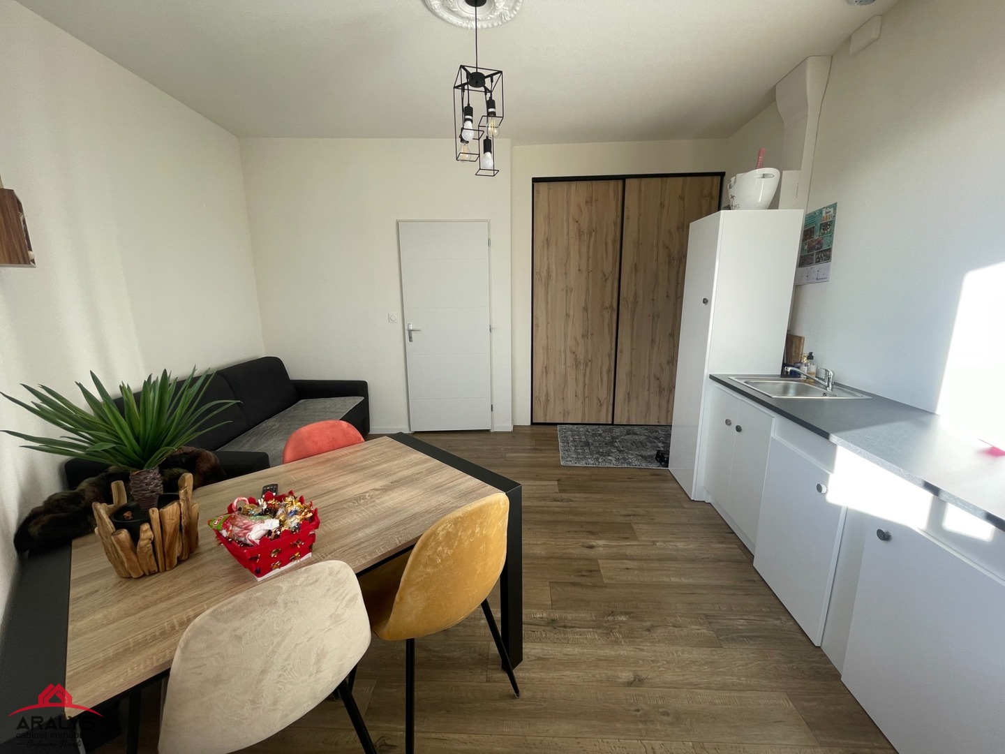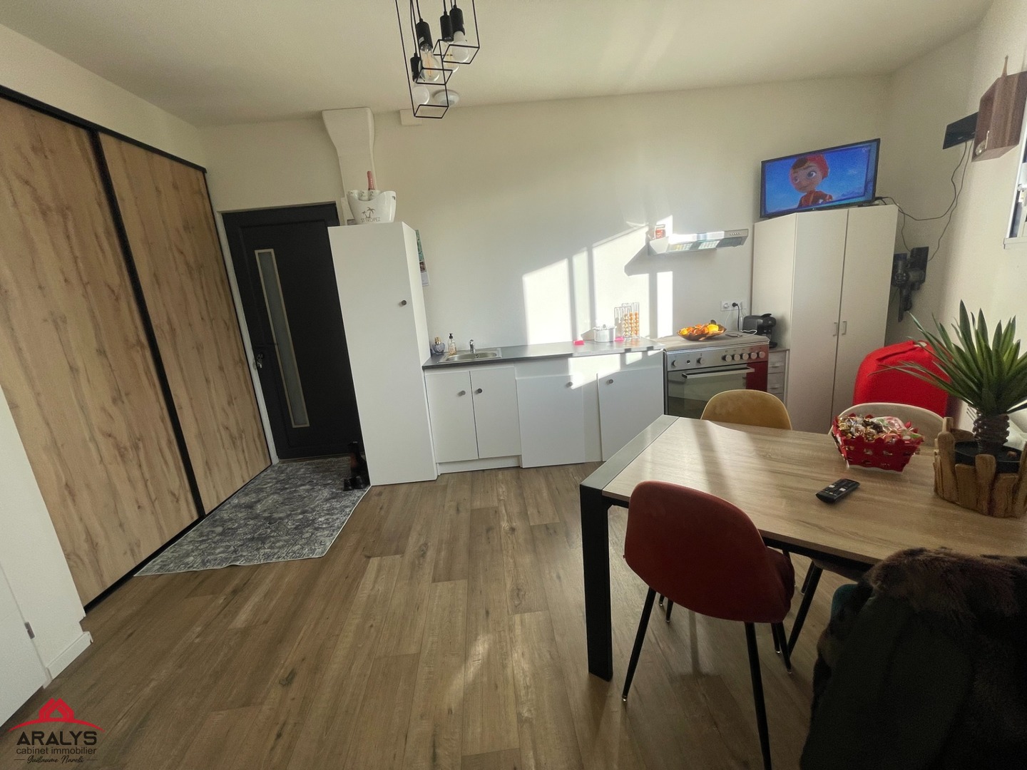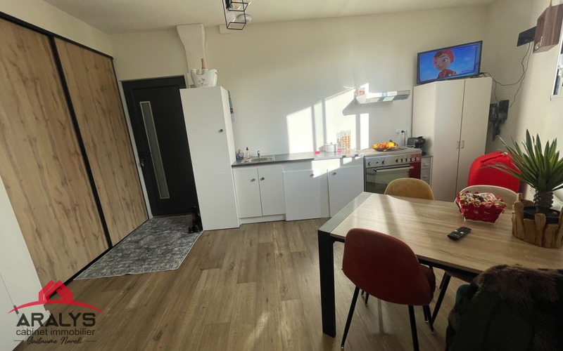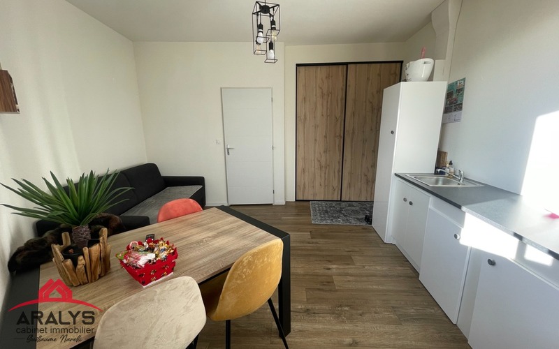 Cuisine ouverte sur un coin salon,1 chambre équipée d'un dressing, salle d’eau et WC.
