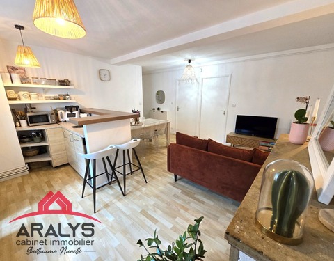 DISPONIBLE DE SUITE Au coeur du centre ville, bel appartement de 84 m² au 2° étage d'un petit immeuble comprenant cuisine aménagée et équipée ouverte sur grande pièce de vie, 2 chambres, salle de bain avec espace buanderie, WC, adorable balcon à la vue dégagée avec cabanon. Les ++ : -joli vue, pas de vis à vis -charme fou : parquets, cheminées d'ornement -toutes commodités à 2 pas -possibilité de louer un garage en sus à proximité...