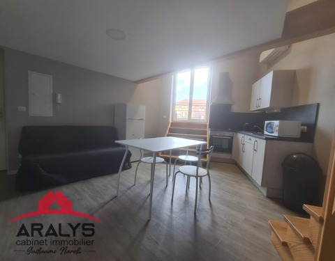 DISPONIBLE AU 28 NOVEMBRE 2025 En plein centre ville de Roanne adorable appartement de type 2 loué meublé situé au 2ème étage d’une surface de 55 m² composé d’une pièce de vie avec cuisine équipée ouverte, une chambre indépendante, une salle de bain avec WC. Chauffage individuel électrique Les +++ : - Logement sécurisé - Nombreux commerces à proximité - Cuisine équipée : micro-ondes, plaque, hotte - Hyper...