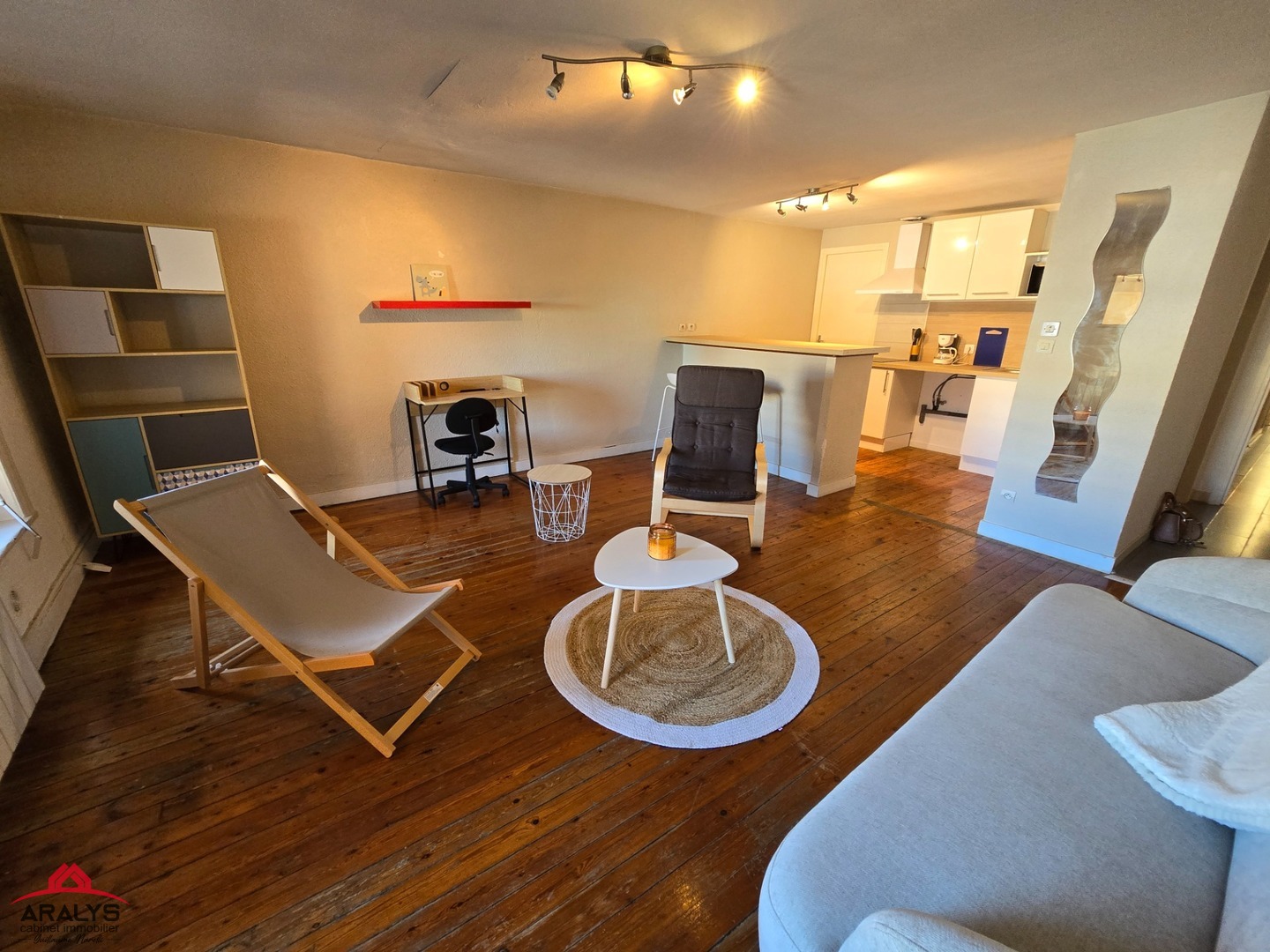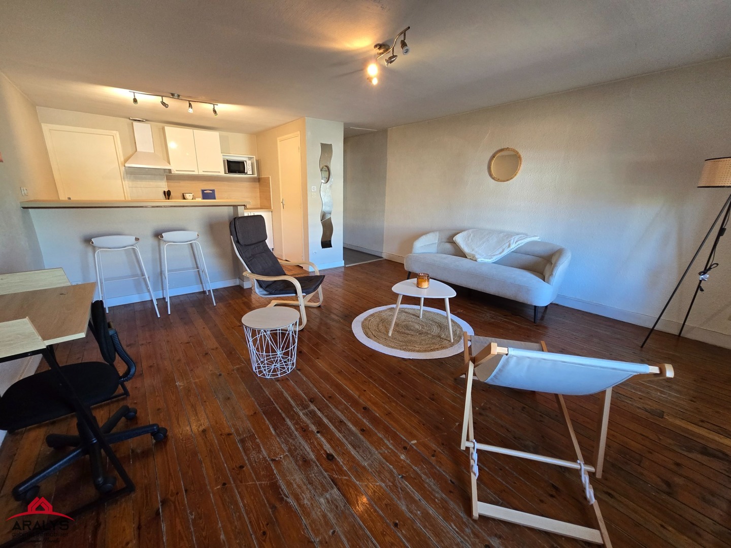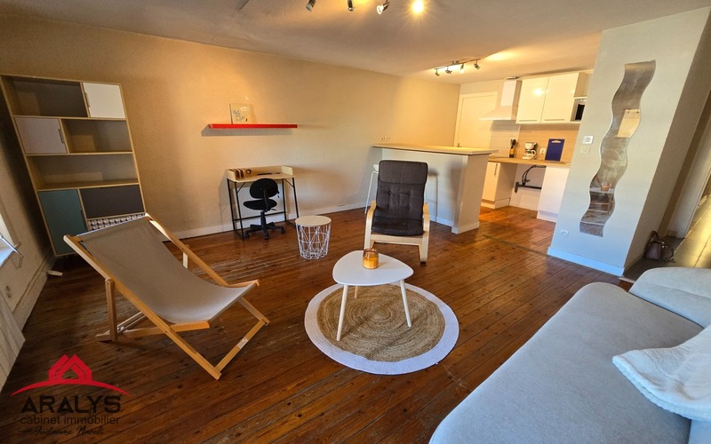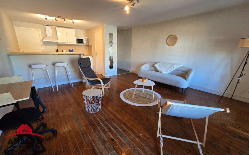 En plein centre ville de Roanne adorable appartement de type 2 loué meublé situé au 2ème étage d’une surface de 55 m² composé d’une pièce de vie avec cuisine équipée ouverte, une chambre indépendante, une salle de bain avec WC.
