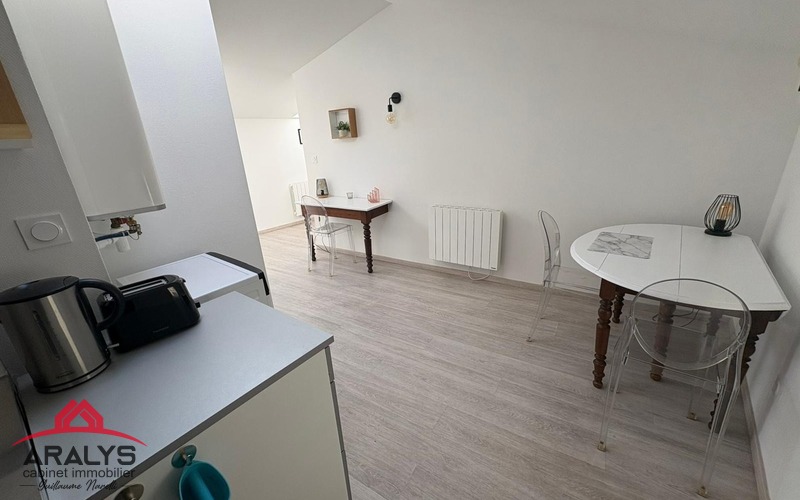 A deux pas de l'IUT et de la gare ce bel appartement rénové et meublé de type 2 de 42 m² habitables au 1er étage comprenant une cuisine semi équipée ouverte sur le salon, une chambre et une salle d'eau avec WC.