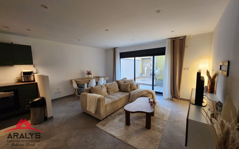 Adorable appartement de 74 m² au sol en duplex comprenant cuisine aménagée ouverte sur salon séjour avec accès terrasse clos de mur sans vis à vis, 2 chambres à l'étage, salle d'eau, WC indépendant, cellier / buanderie.
