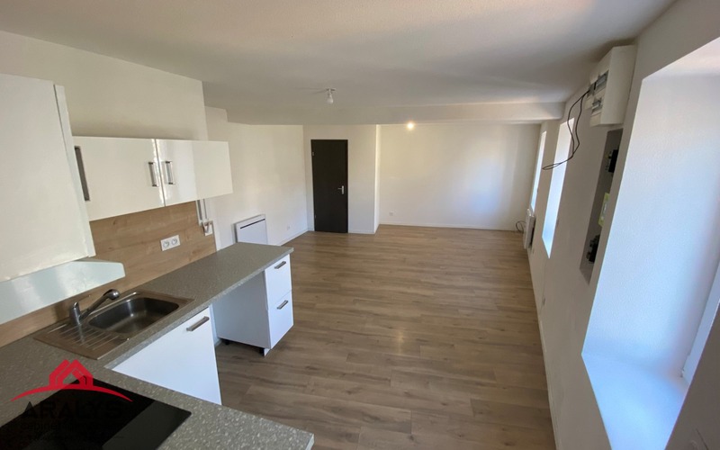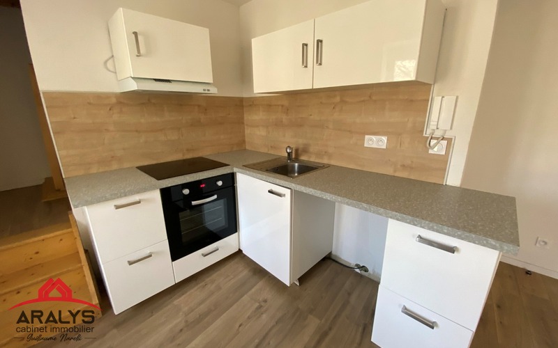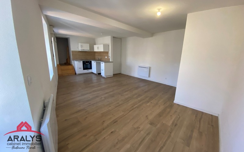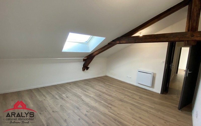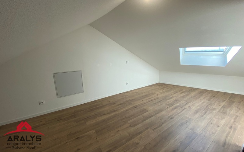Bel appartement de type 3 de 79 m² au sol en duplex au 1° étage comprenant cuisine aménagée et équipée ouverte sur pièce de vie, 2 belles chambres sous pente, salle d'eau avec WC.