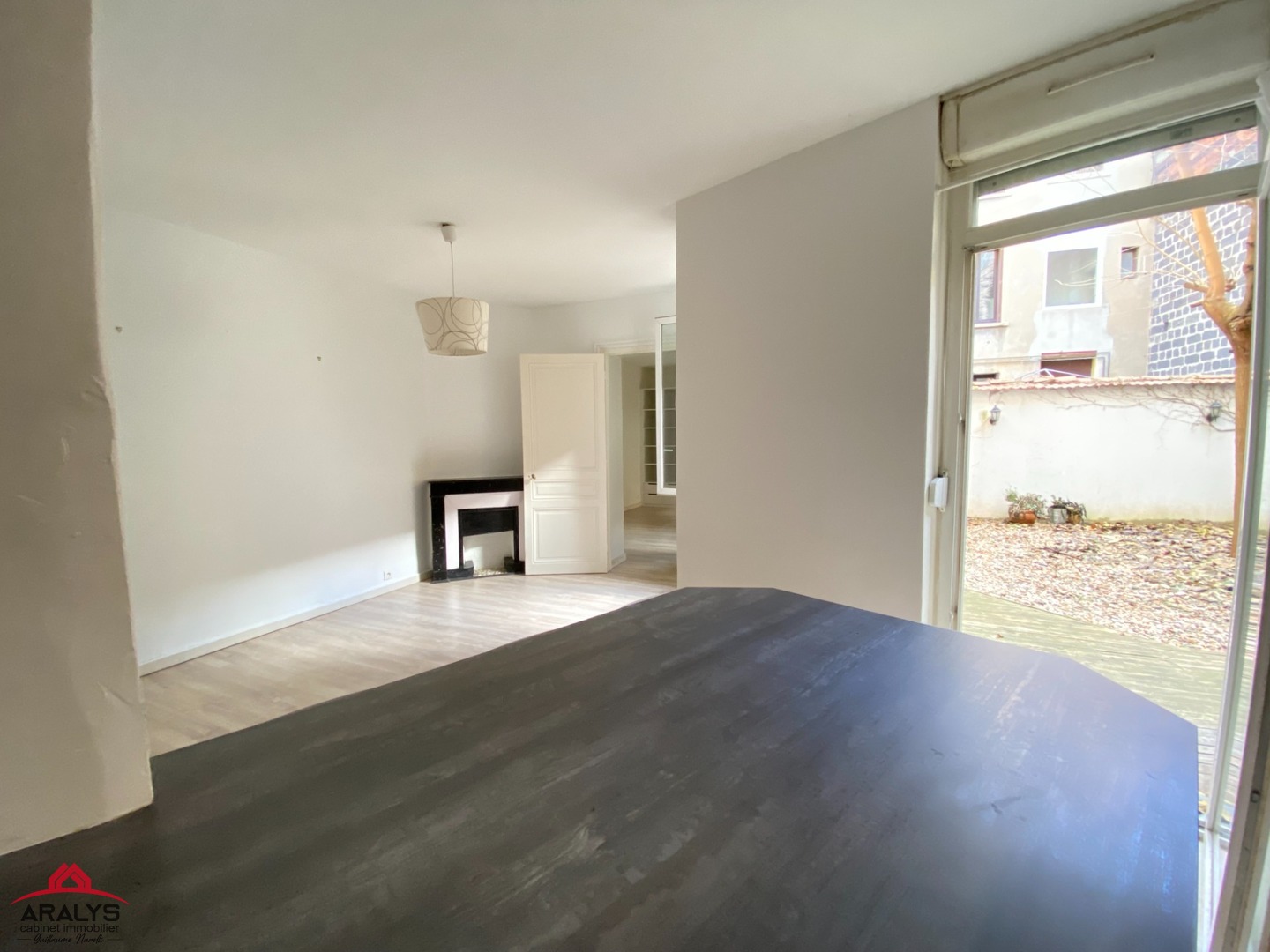 Roanne centre / Gare, bel appartement de 60m² en rez de jardin offrant une belle cuisine dinatoire ouverte sur salon, 2 chambres, salle de bain avec douche et baignoire, WC, terrasse clos de murs.
