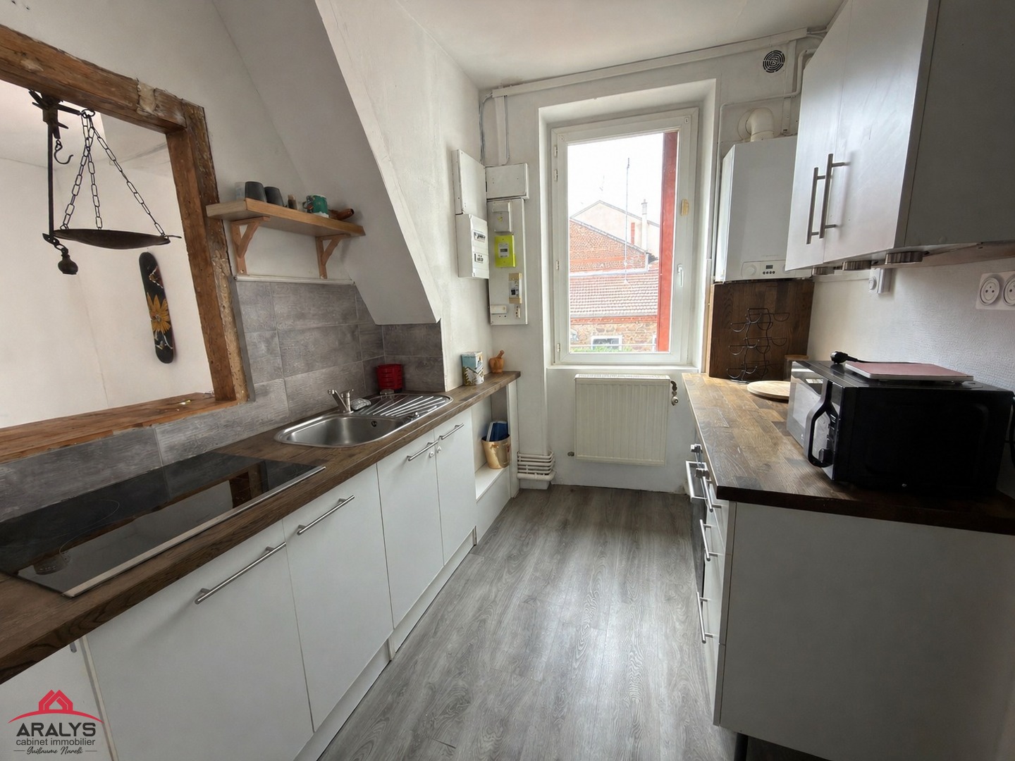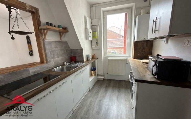 Dans un petit immeuble de 4 logements, appartement de type 3 au 1) étage comprenant cuisine aménagée et équipée, séjour, 2 chambres, salle d'eau avec WC.