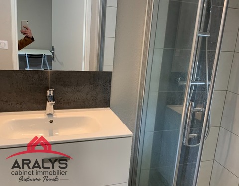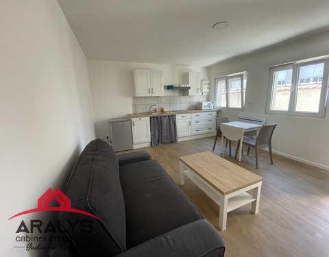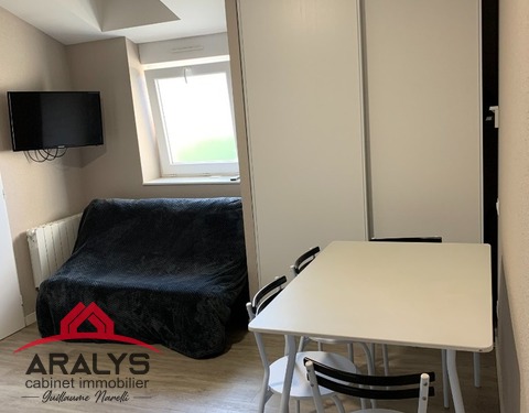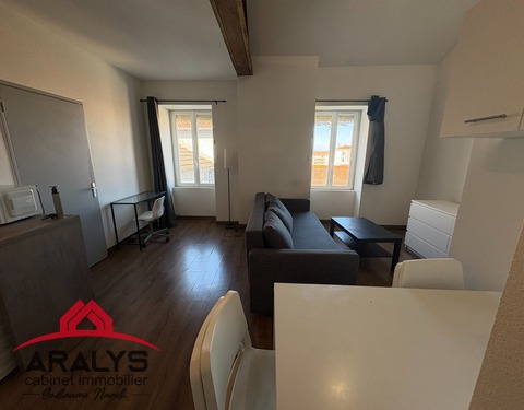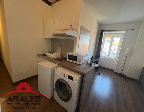 DISPONIBLE DE SUITE Au cœur du centre ville de Roanne, adorable studio meublé comprenant cuisine équipée (avec machine à laver) ouverte sur pièce de vie, salle d'eau, WC. Les ++ : -appartement entièrement équipé -cœur de ville et proche gare -très bon état Loyer : 385 € + 50 € de provision de charges (soumises à régularisations) DPE E FRAIS D'AGENCE : 250 € (dont 60 € d’Etat des Lieux) Dépôt de garantie : 385 € ARALYS...