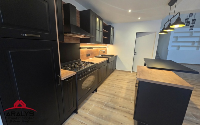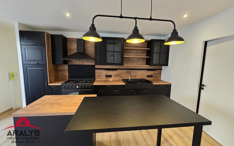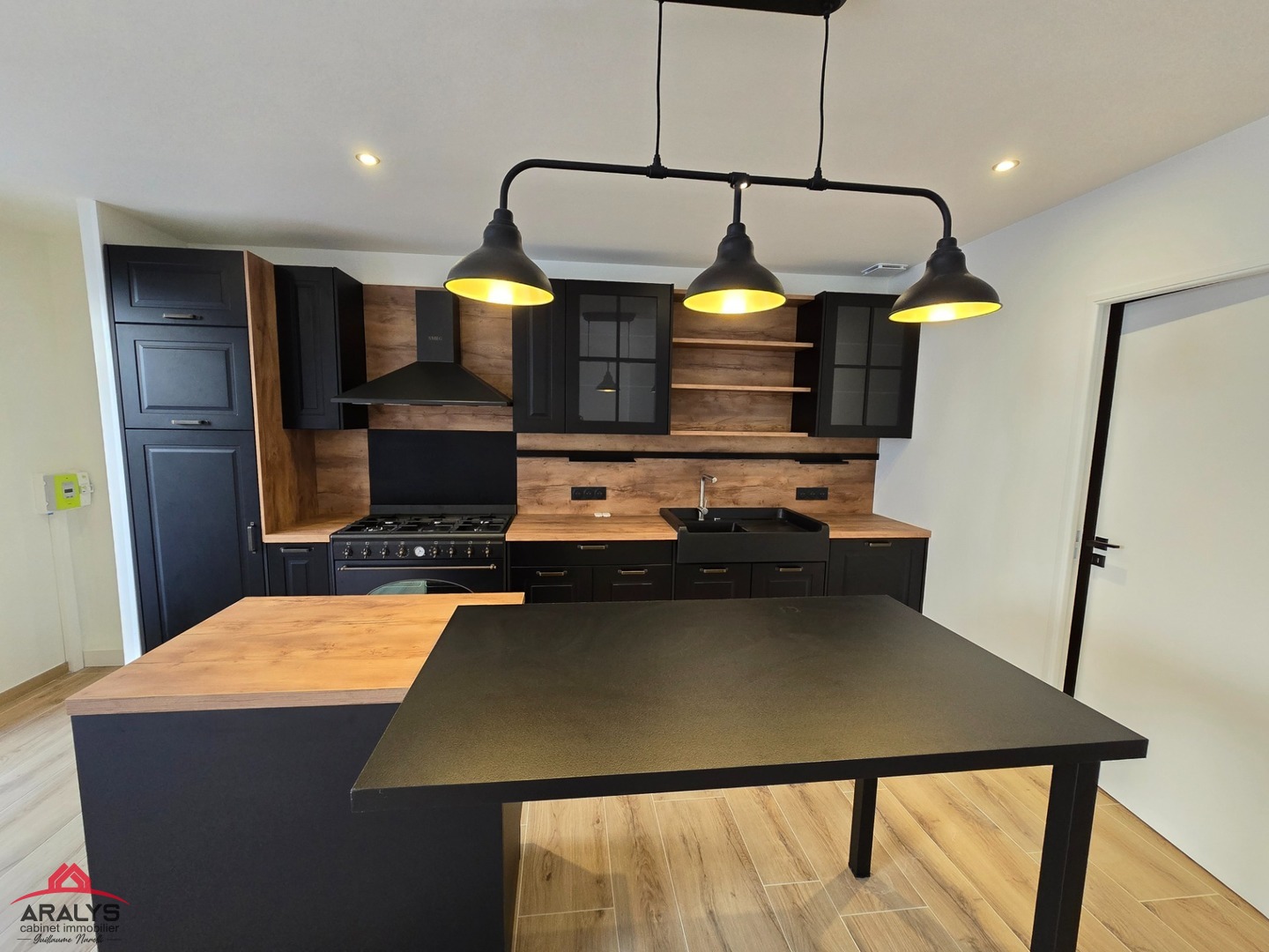 Belle pièce de vie de 69 m² offrant une cuisine full équipée avec îlot central