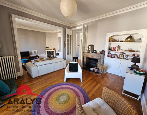 EN EXCLUSIVITÉ CHEZ ARALYS Roanne – Baron du Marais Dans un bel immeuble de style 1900 , superbe appartement de 138 m² au 2 ème étage avec garage et cave Amoureux du charme et de l’ancien réactualisé venez découvrir ce superbe appartement de charme Il se compose d’un vaste hall en parquet massif avec placard de rangements Un magnifique double salon séjour en parquet avec large porte fenêtres pour un luminosité maximum Grande...