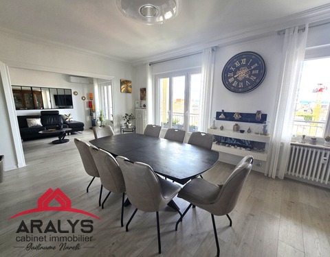 NOUVEAUTÉ en EXCLUSIVITÉ CHEZ ARALYS ROANNE en résidence sécurisée Le Navarre, au 9 ème étage avec superbe vue dégagée sur les Monts du Lyonnais, très bel appartement rénové offrant 132 m² habitables. Grande cuisine équipée de 15 m² avec porte fenêtre sur balcon. Un cellier de 10 m² à proximité. La pièce de vie séjour et salon lumineuse de 38 m² avec ouverture sur le balcon. Côté nuit : les 4 chambres avec placards Une salle...