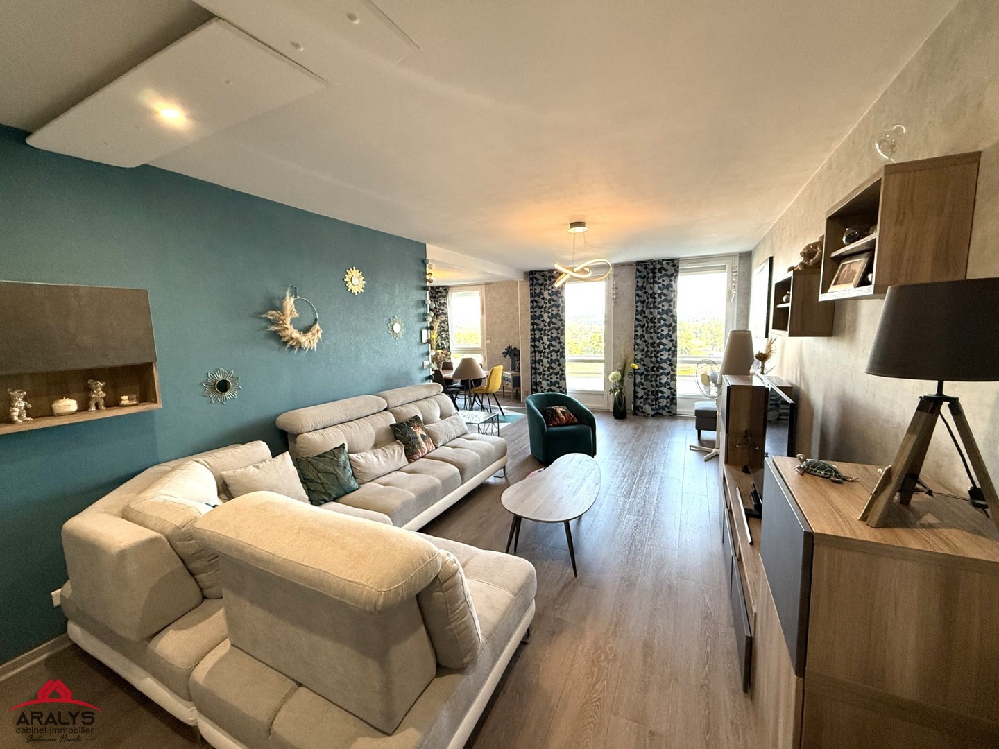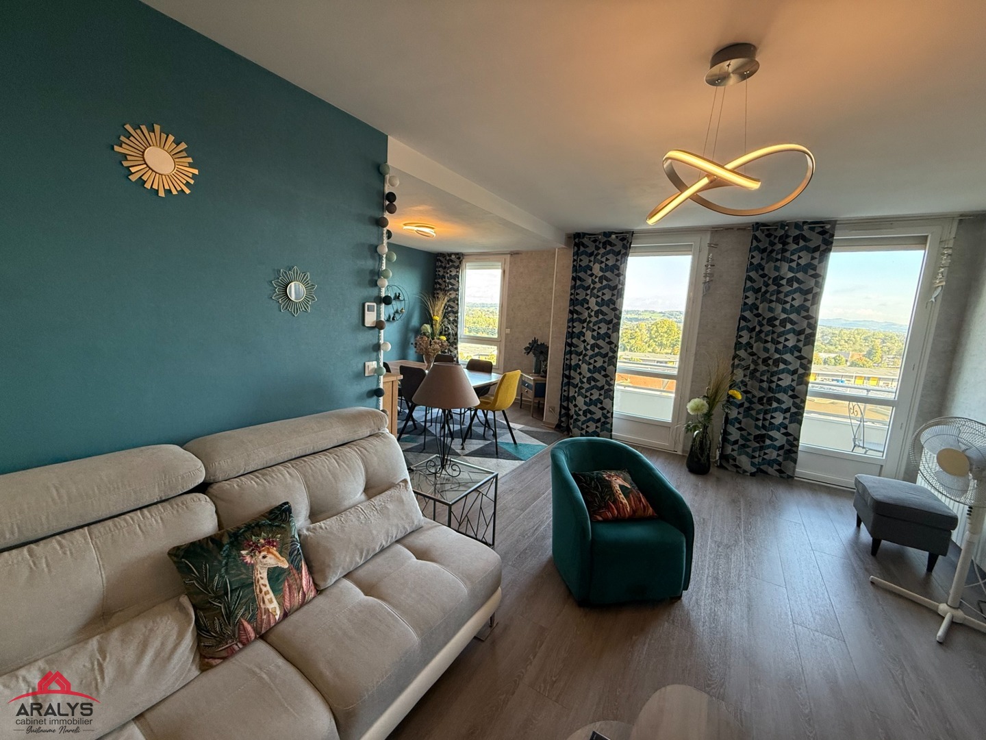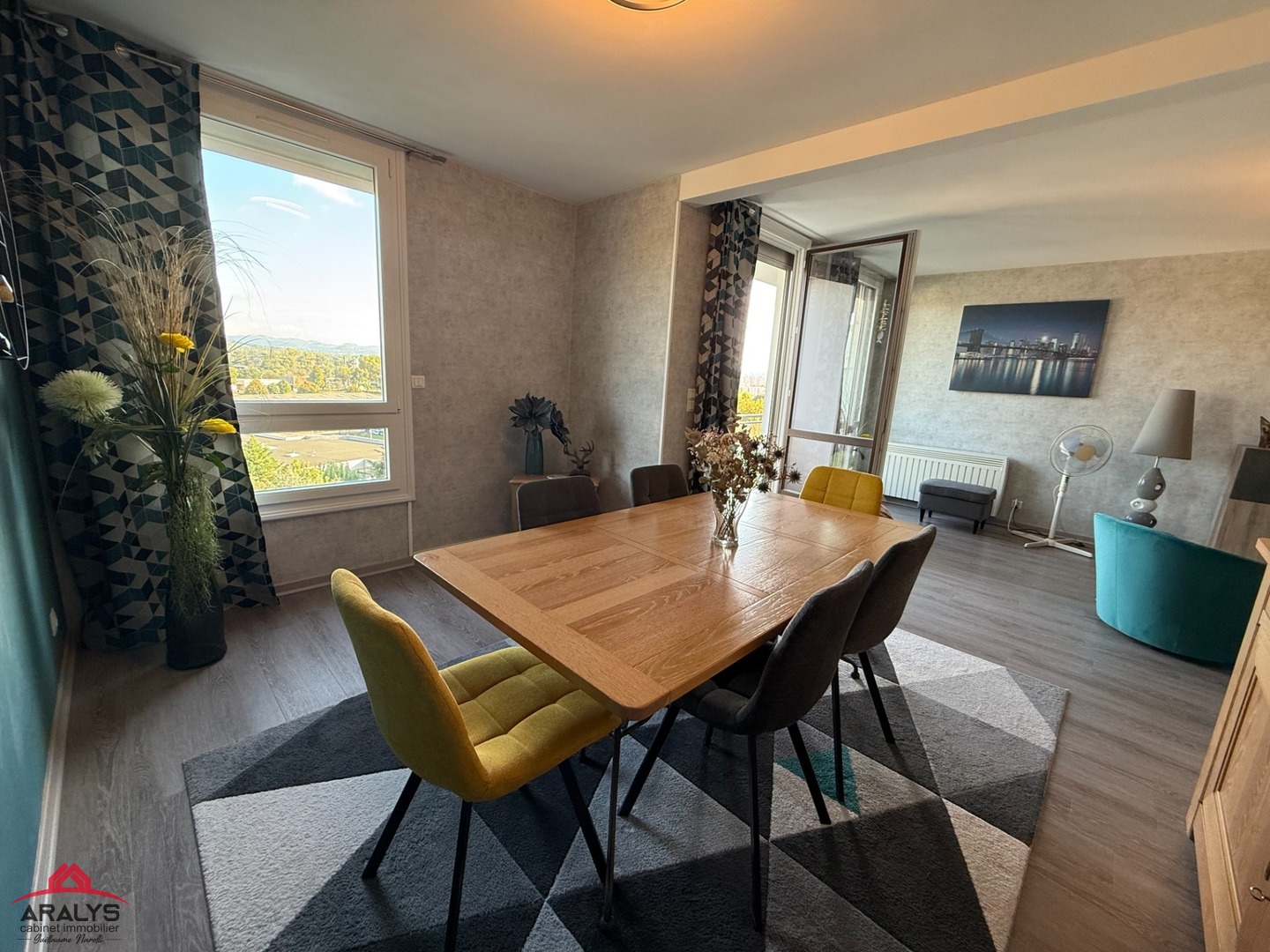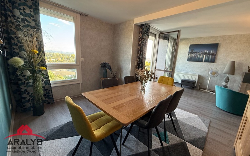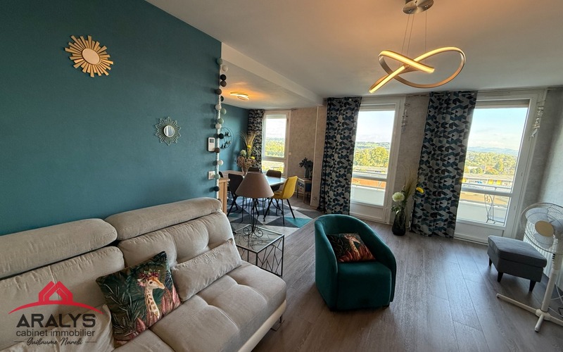 ROANNE en résidence sécurisée Le Navarre, au 9 ème étage avec superbe vue dégagée sur les Monts du Lyonnais, très bel appartement rénové offrant 132 m² habitables.