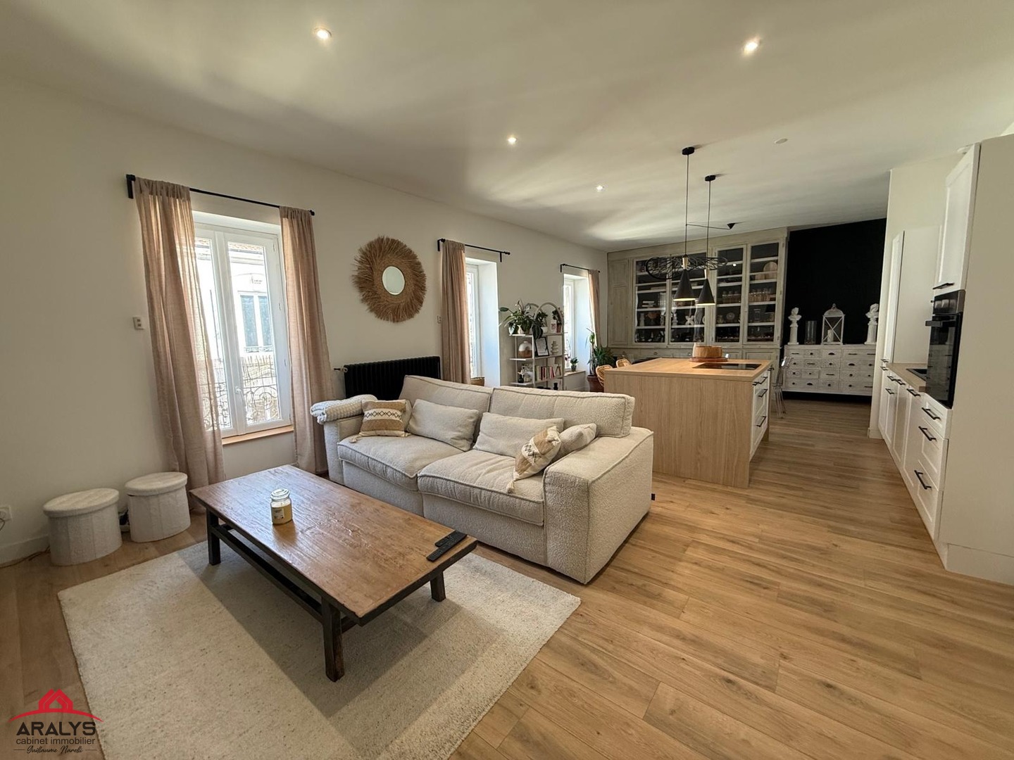 Le double salon séjour de 47m², lumineux et convivial, s’ouvre sur une cuisine entièrement aménagée et équipée.