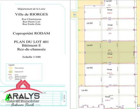 EN EXCLUSIVITÉ CHEZ ARALYS RIORGES - 2 Garages individuels en résidence sécurisée 'Le Clos des Dames" Equipés chacun d'une porte sectionnelle pleine électrique. Dimension : 2.92 en largeur et 2.25 en hauteur Dotés chacun d'électricité et de lumière. lot 301 de 68 m² / Prix : 30 000 € lot 401 de 81 m² / Prix : 34 000 € Destination uniquement à usage de Garage. Copro de 22 LOFTS Réf ARA 924 / DPE non requis / PRIX : 30 000 € ...
