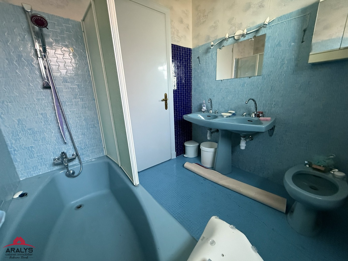 Une maison offrant environ 170 m² habitables, à l’étage un grand hall d’entrée une cuisine équipée, un salon, un séjour lumineux donnant sur balcon, deux chambres (15 et 12 m²), une salle de bains, un wc.