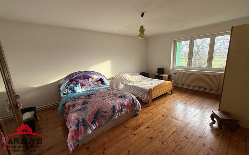 A l’étage deux chambres spacieuses 23 m² + un grenier.