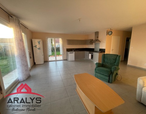 EN EXCLUSIVITÉ LE CABINET ARALYS IMMOBILIER VOUS PRESENTE une maison récente de 2016. Découvrez de plain-pied dans un environnement agréable. Cette maison composée d’une belle pièce de vie lumineuse avec une cuisine équipée ouverte sur salon séjour donnant sur une terrasse. Trois chambres de 11, 11, 13 m², une grande salle de bains avec baignoire, douche et un toilette. Cellier Un garage de 20 m² Un terrain plat de 588 m² clos et...