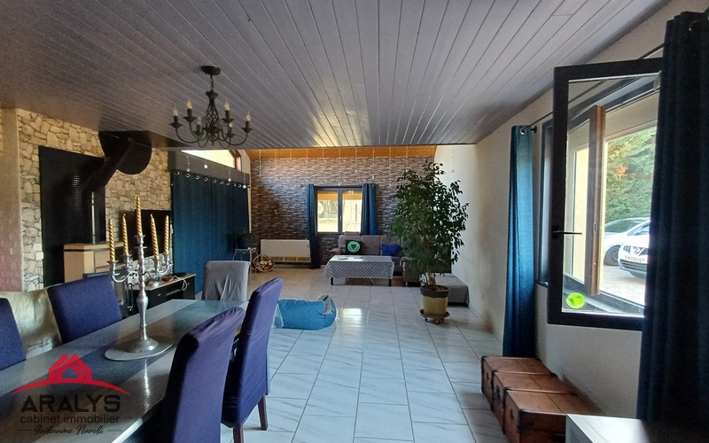 Grande maison de famille de 210 m² habitables offrant de plain- pied une cuisine familiale donnant sur terrasse, grande pièce de vie de 55 m² avec poêle à bois et sa mezzanine de 27 m².