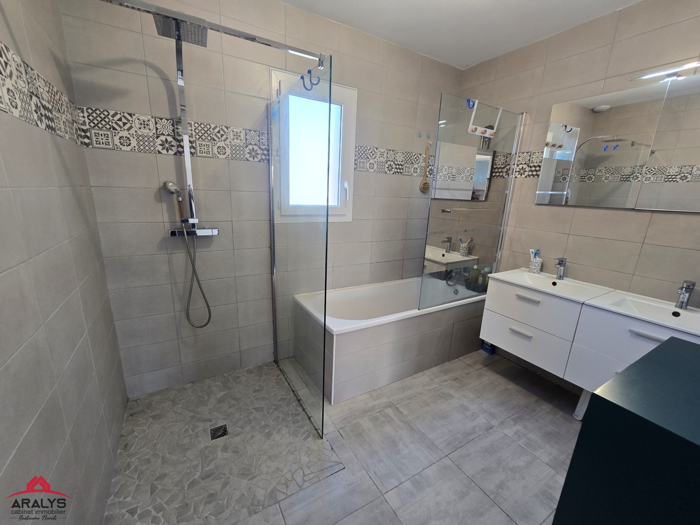 Salle de bain familiale avec douche italienne / baignoire et double vasque