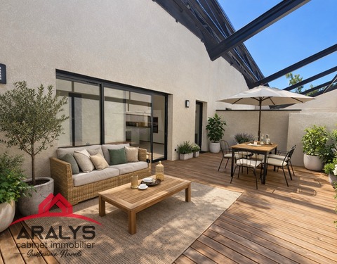 EN EXCLUSIVITÉ CHEZ ARALYS CABINET IMMOBILIER RIORGES- APPARTEMENT NEUF Petite copropriété rez jardin esprit LOFT offrant 101 m² habitables avec un garage individuel. De plain-pied sur toute la surface, avec terrasse bois fermée, ensoleillée et sans vis-à-vis. Particulièrement lumineuse la pièce à vivre de 42 m² est ouverte sur la terrasse par une large baie vitrée, une verrière plongeante amenant la clarté sur l’îlot central de la...