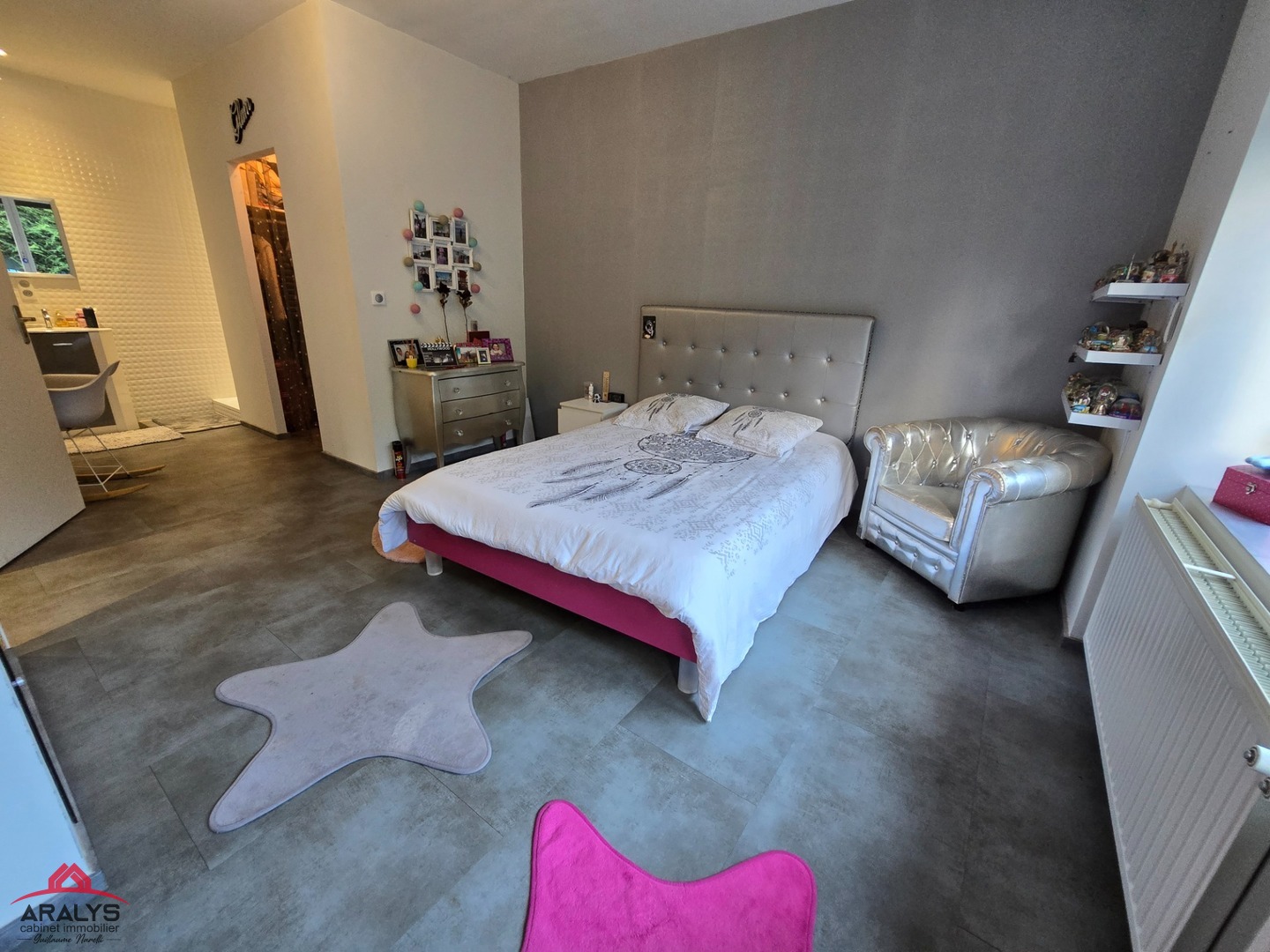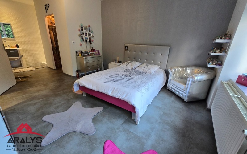 À l’étage, deux chambres élégantes s’ajoutent, ainsi qu’une seconde suite raffinée avec dressing, salle d’eau et WC indépendants.
