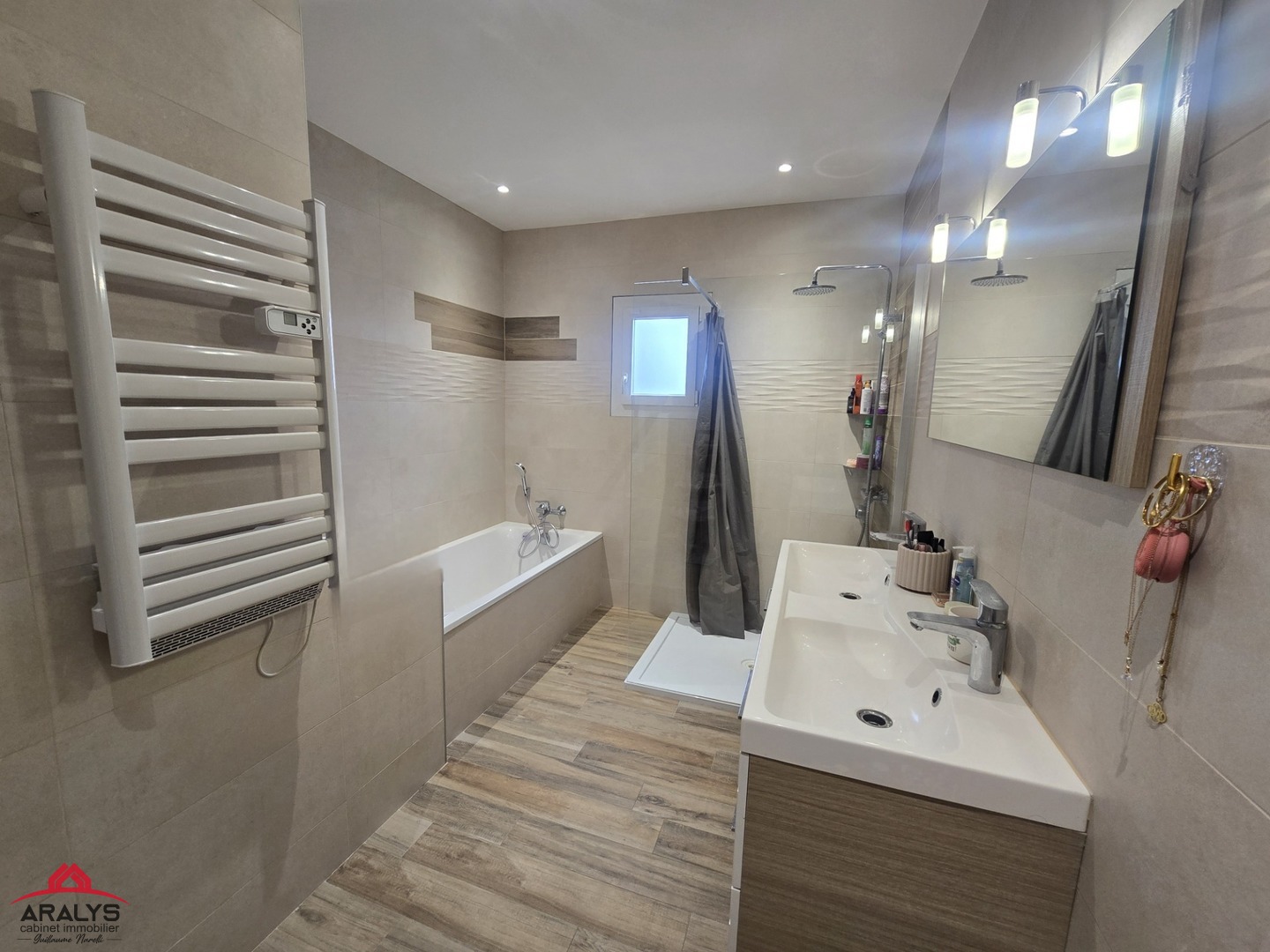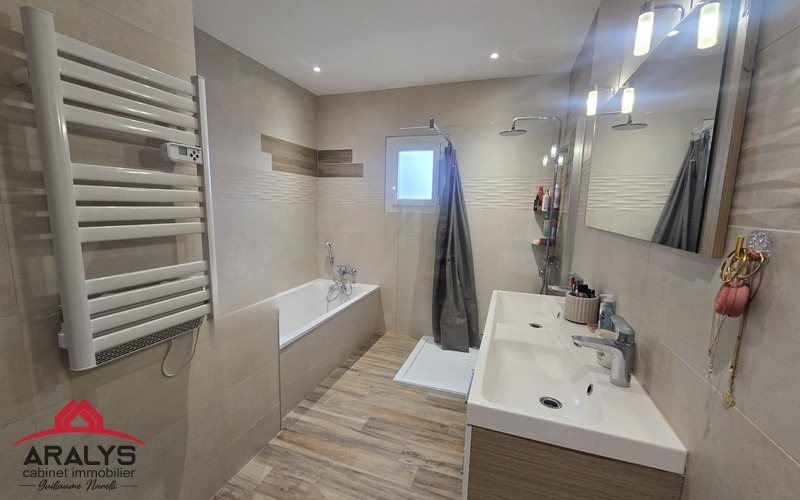Grande salle de bains familiale avec baignoire / douche italienne et double vasque + Fenêtre