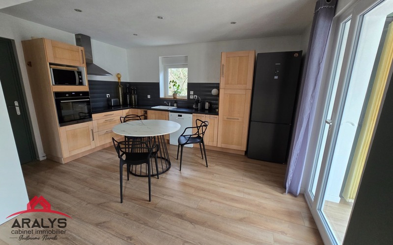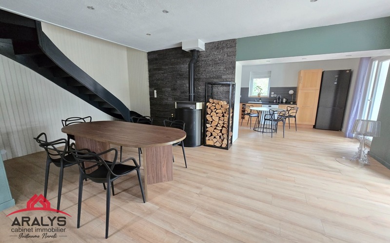 Grande maison familiale de 140 m² sur 2 niveaux comprenant de plain-pied cuisine dinatoire ouverte sur salle à manger et salon d’une surface totale de 45 m²