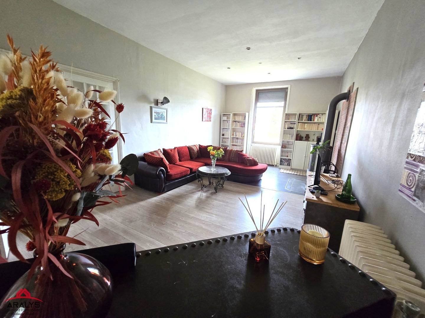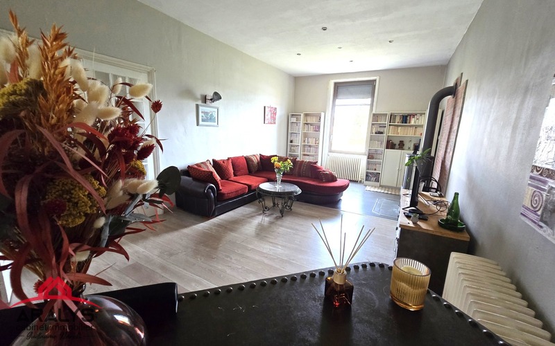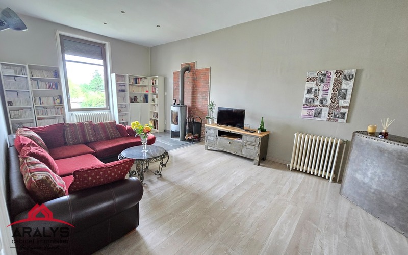D’une surface de 145 m² habitables, elle offre au 1er niveau un grand salon lumineux et traversant de 31 m² avec poêle à bois