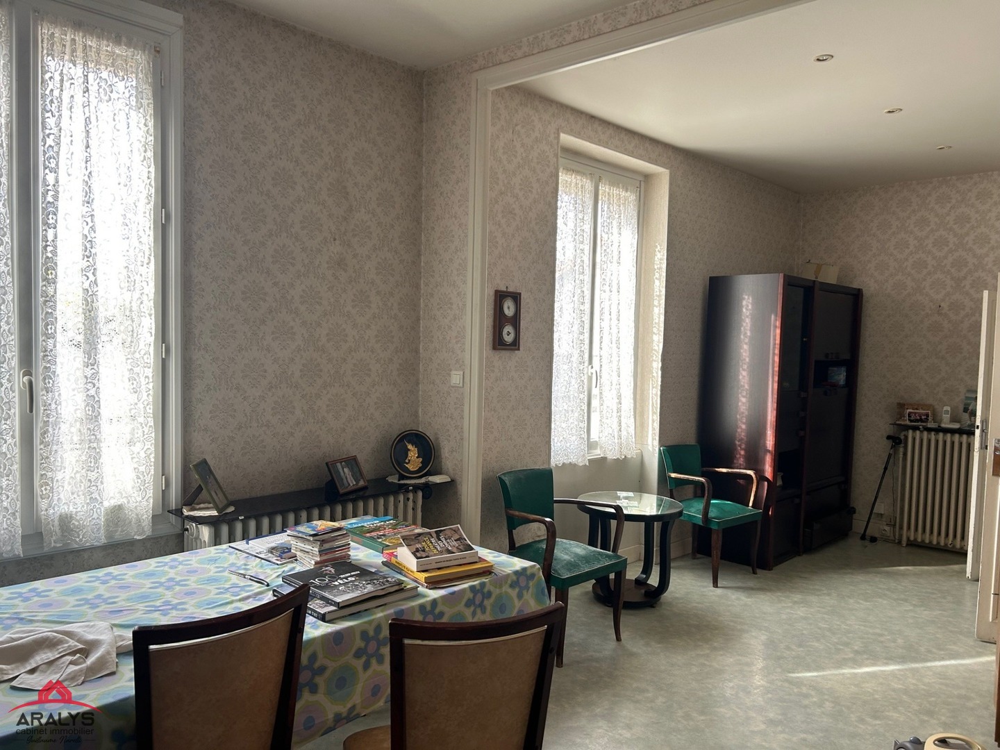A rénover offrant environ 78 m² habitables avec cuisine indépendante, séjour et salon de 30 m², salle d'eau et wc.