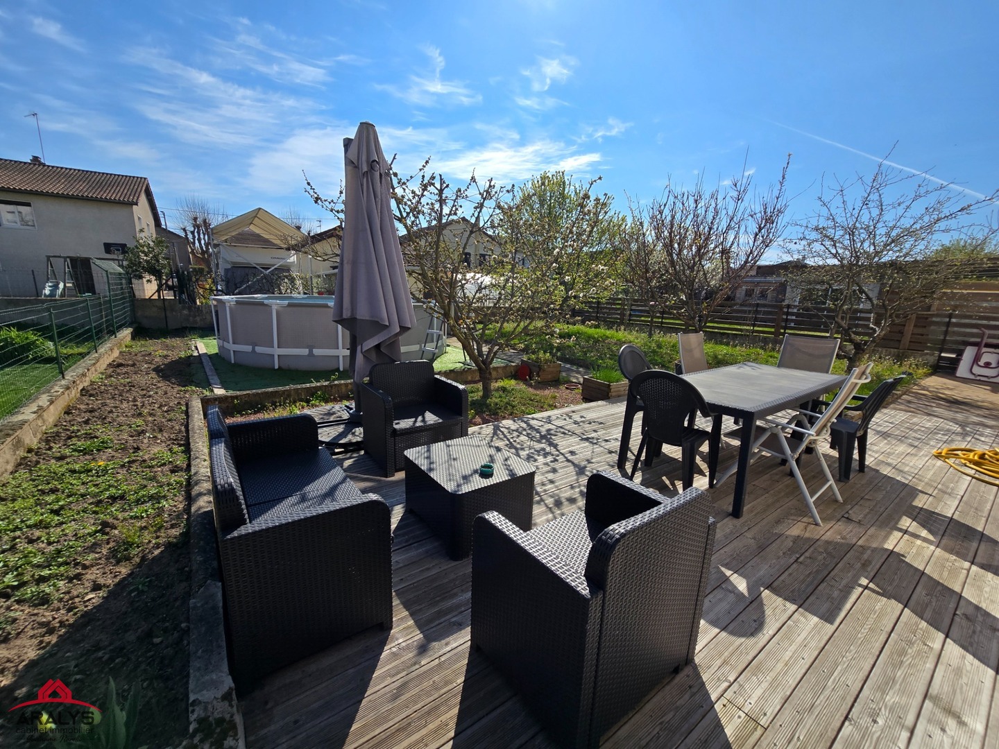 Terrasse bois plein sud avec tendue électrique