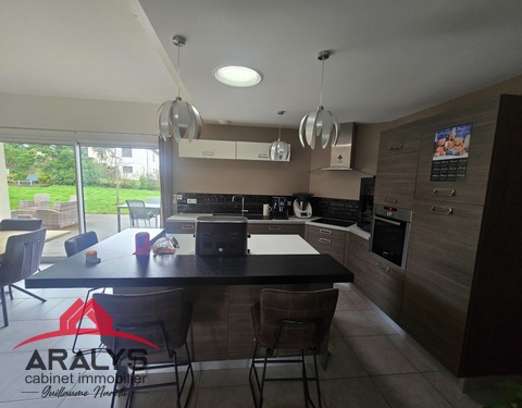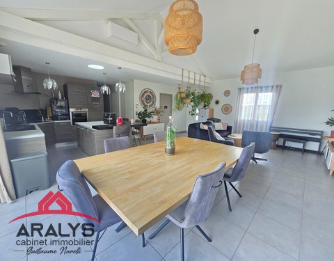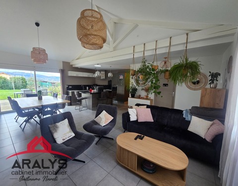 EXCLUSIVITE CABINET ARALYS Cote Roannaise - Secteur St jean St Maurice Superbe construction de qualité de 2014 d'une surface de plain pied de 148 m² sur un terrain clos de 1488 m² Elle offre une magnifique pièce de vie de 50m² avec sa cuisine entièrement équipée et son ilot de repas - On découvre également la charpente traditionnelle apparente qui offre un volume généreux à la pièce de vie et donne un esprit maison de vacances -...