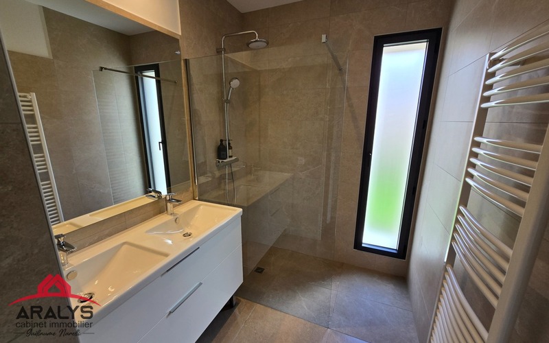 Très belle salle d’eau avec douche italienne et meuble double vasque