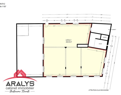 EN EXCUSIVITÉ CHEZ ARALYS A RIORGES Pour activité secteur tertiaire. 351 m² au 1er étage avec avec 2 terrasses (10 et 16 m²) 241 m² au 2ème étage avec terrasse de 100 m² livré hors d'eau hors d'air Division possible en plusieurs lots de plus petites superficies. PRIX : 1 er étage : 527 055 € HT 2 ème étage : 361 800 € HT soit 1501 € HT le m² livraison SEPTEMBRE 2026 DPE NON REQUIS car pas d'installation chauffage Copro de 10...